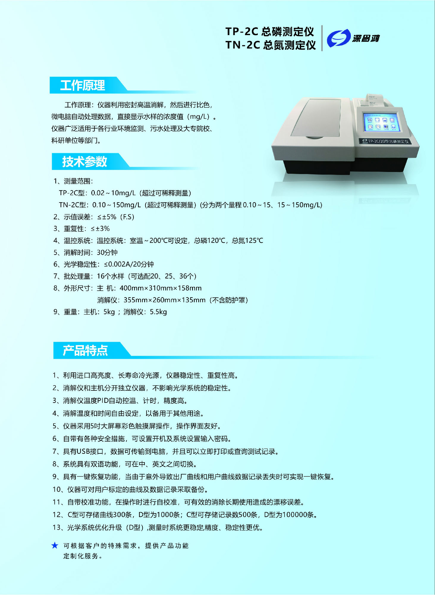 多參數(shù)水質(zhì)測定儀、便攜式多參數(shù)水質(zhì)測定儀、COD·氨氮·總磷·總氮測定儀、COD·氨氮·總磷測定儀、COD·氨氮測定儀、總磷測定儀、總氮測定儀等多款升級新的產(chǎn)品。