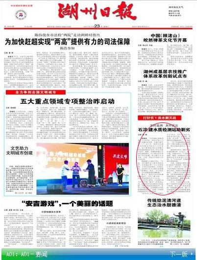 2017年5月23日 A01:A01-要聞 稿件來源:湖州日報 記者:陳棟