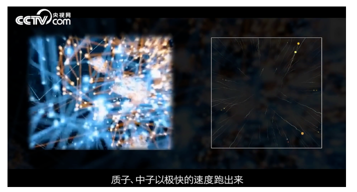 舉個極端的例子,就是原子彈爆炸后鈾或者钚從原子層面裂開,大量的原子核內物質,質子、中子以極快的速度跑出來,到處亂撞。