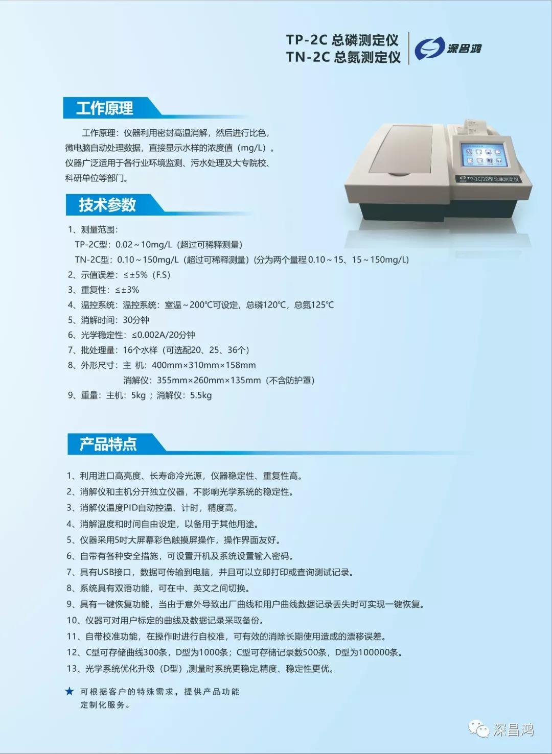 COD測定儀、總磷測定儀、總氮測定儀、氨氮測定儀、多參數(shù)水質(zhì)測定儀、COD氨氮總磷總氮測定儀、COD氨氮總磷測定儀、COD氨氮測定儀、重金屬多參數(shù)水質(zhì)測定儀、水產(chǎn)養(yǎng)殖水質(zhì)測定儀、余氯測定儀等多款升級新的產(chǎn)品。