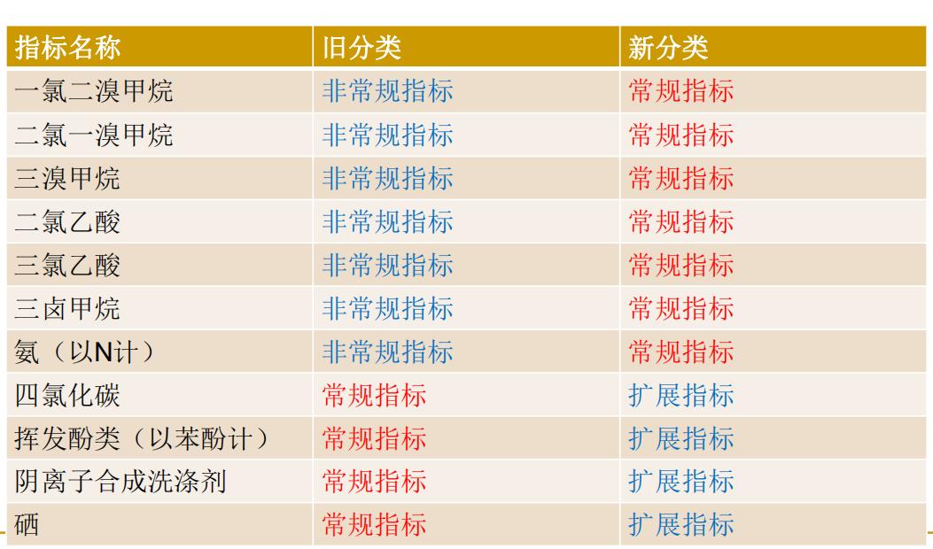(圖:新版水質(zhì)常規(guī)指標(biāo)變化)