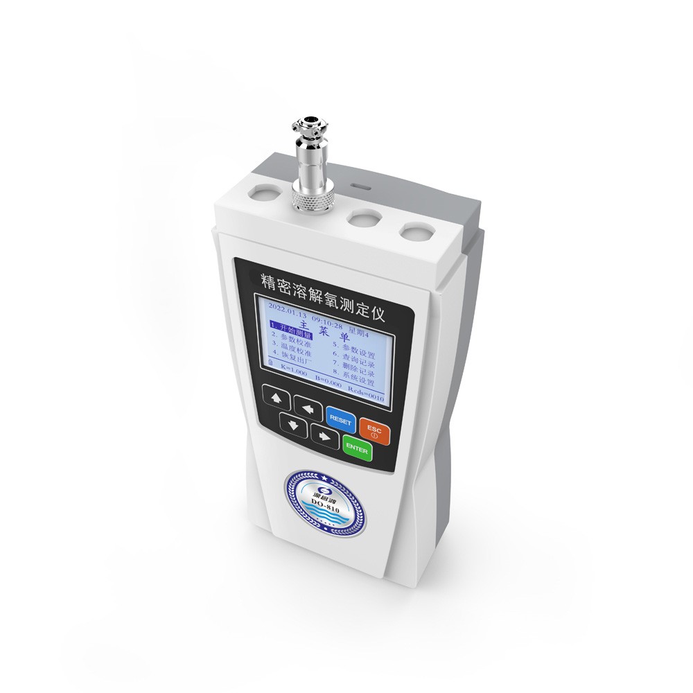 DO-810型便攜式溶氧儀采用超低功耗單片機測量和控制,采用熒光法測量。具有穩(wěn)定可靠、操作簡單方便等優(yōu)點;該儀器能以兩種溶解氧含量表示單位指示測定結果,即氧濃度(mg/L)和氧的飽和百分含量(%),此外還同時對被測介質的溫度(℃)進行測量顯示。